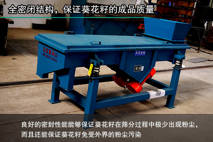 密封性對于葵花籽篩分是一個重要的參考依據,良好的密封性能能夠保證葵花籽在篩分過程中極少出現粉塵,而且還能保證葵花籽免受外界的粉塵污染,極大地提高了葵花籽的成品質量。