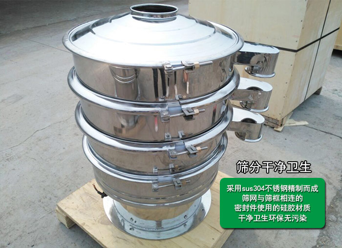 不銹鋼振動篩整機采用標準304不銹鋼精制而成,內部所有接縫高精拋磨處理,篩網與篩框相連的密封件使用的硅膠材質,干凈衛生無污染,并且防銹防腐蝕,完全符合食品衛生標準。