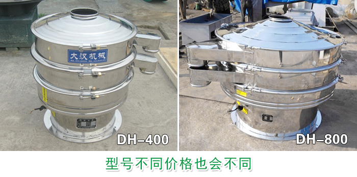 山楂粉不銹鋼振動(dòng)篩有:DH-400、DH-600、DH-800、DH-1000、DH-1200、DH-1500、DH-1800、DH-2000等八種標(biāo)準(zhǔn)型號(hào);根據(jù)所選用不同的型號(hào)所安裝的篩網(wǎng)層數(shù)(1—5層)不同、選用的材質(zhì)結(jié)構(gòu)不同(全不銹鋼和與物料接觸部分為不銹鋼材質(zhì))、所裝配的振動(dòng)電機(jī)(功率不同)等都會(huì)造成其價(jià)格上的不同,型號(hào)越大的篩機(jī)價(jià)格也就越貴。