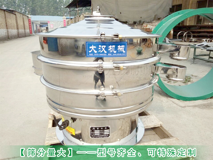 不銹鋼振動篩型號有DH-400—DH-2000等八種不同的型號,可滿足客戶不同的篩分產量需求,每小時篩分產量可達800KG左右,還可根據不同需求特殊定制(加高加緣、安裝進料斗等)。