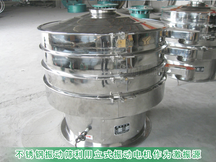 不銹鋼振動篩能滿足玉米粉細至0.028mm以細粗至2mm規格的篩分,可安裝1-5層多層篩網達到同時篩出六種不同規格物料,通過篩網下裝配的彈跳球清網裝置雜質或粗料會自動排出,篩分精細效果好、效率高。