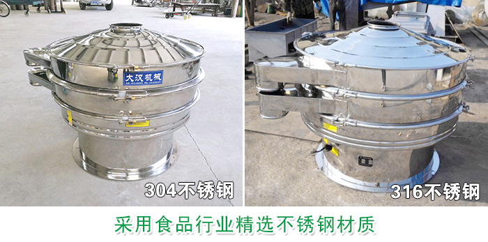 不銹鋼振動篩采用優質304、316不銹鋼材質,可有效針對屬于食品行業類的玉米粉,確保篩分過程中的衛生型與無污染性, 整個篩機結構分為兩種,一種是整機均采用不銹鋼制成,另一種是與物料接觸不分為不銹鋼材質,底座為碳鋼材質,經過內外拋光后的不銹鋼表面光滑無毛刺現象,完全符合國家對于食品行業的制定標準。