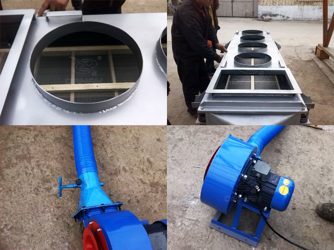 大漢機械在原有的基礎上加裝風機,可用于高溫度物料,在進行篩分的同時也可以進行散熱處理,防塵蓋上留有圓孔,目的也是幫助其更好的降溫,既有效的進行了防塵,也可以加快降溫的速度。