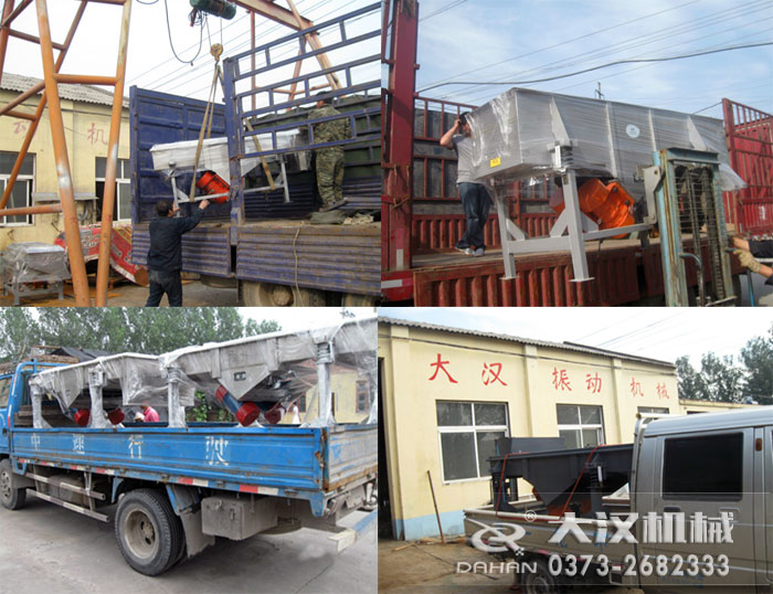 515型可調節直線振動篩兩臺振動電機做同步、反向旋轉時,其偏心塊所產生的激振力在平行于電機軸線的方向相互抵消,在垂直于電機軸的方向疊為一合力,因此篩機的運動軌跡為一直線。兩電機軸相對篩面在垂直方向有一傾角,在激振力和物料自重力的合力作用下,物料在篩面上被拋起跳躍或向前作直線運動,從而達到對物料進行篩選和分級的目的。